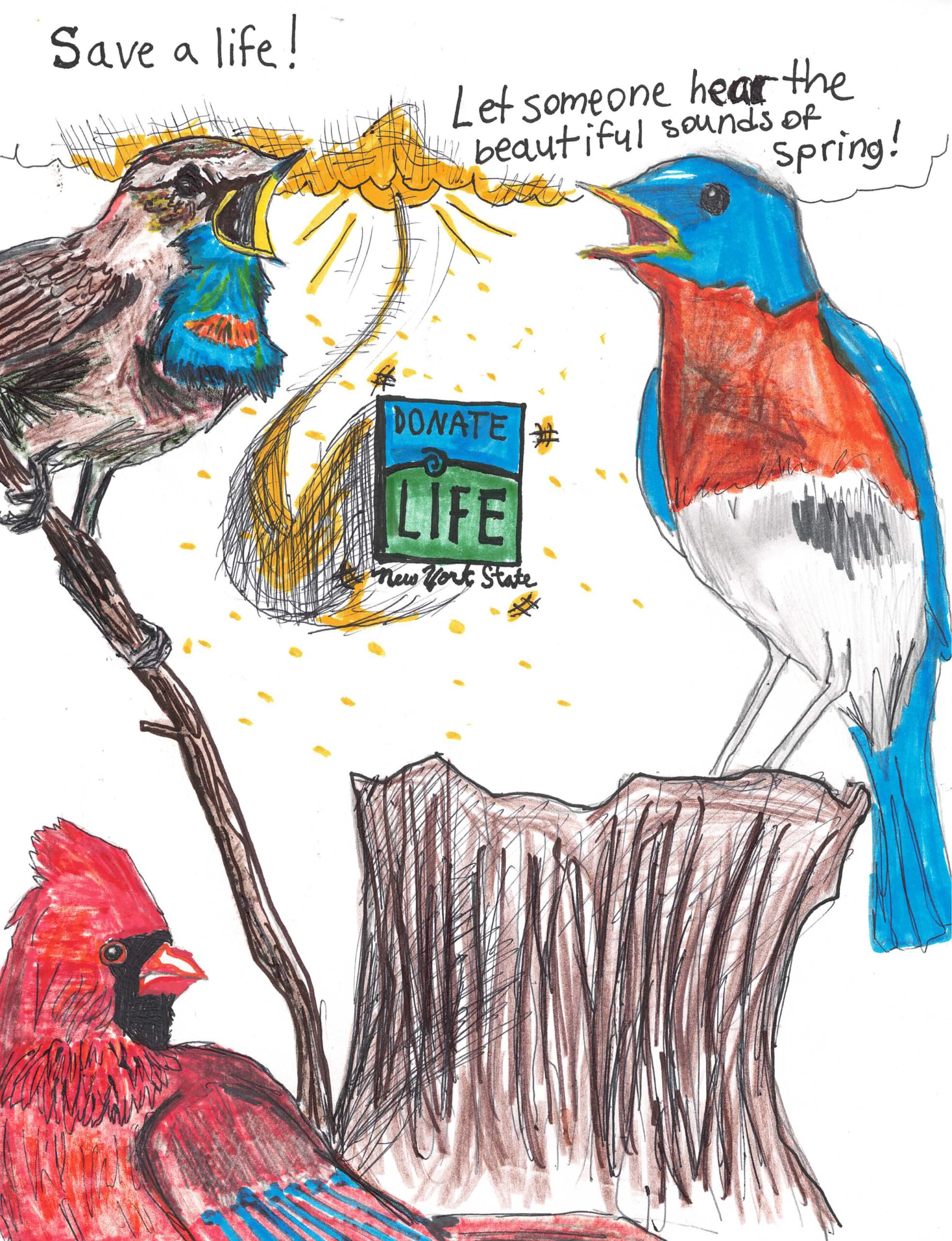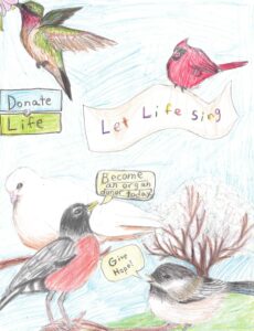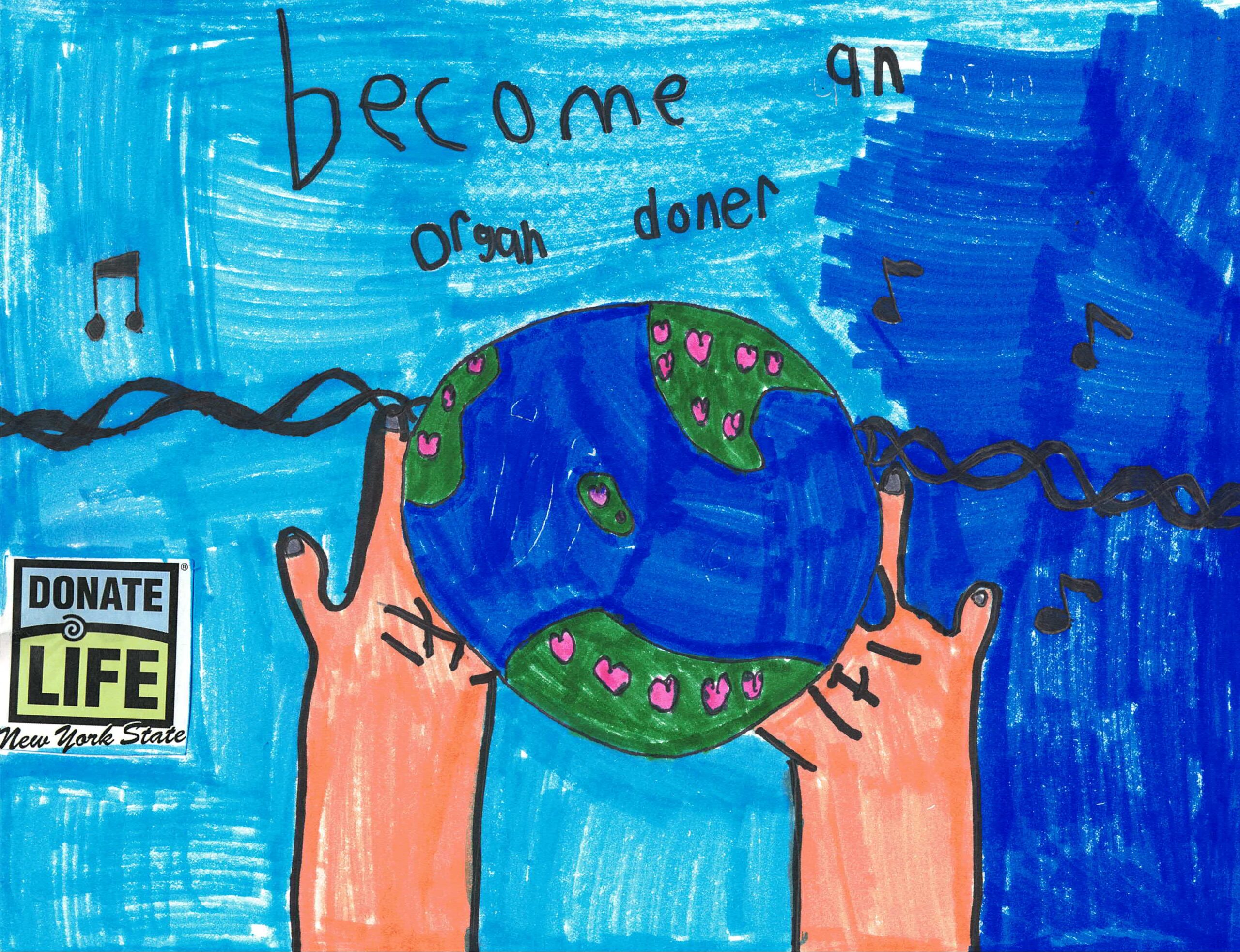 Donate Life NYS received nearly 100 submissions, which were judged by Donate Life NYS’ Donation Advisory Council comprised of transplant recipients and their families. Entries were judged based on creativity, visual impact, artistic merit, and originality. Contest winners will be announced as part of the organization’s annual Legislative Education Event. We invite you to enjoy these wonderfully creative interpretations by the next generation of talented young artists, and be inspired to enroll as an organ, eye, and tissue donor on the New York State Donate Life Registry.