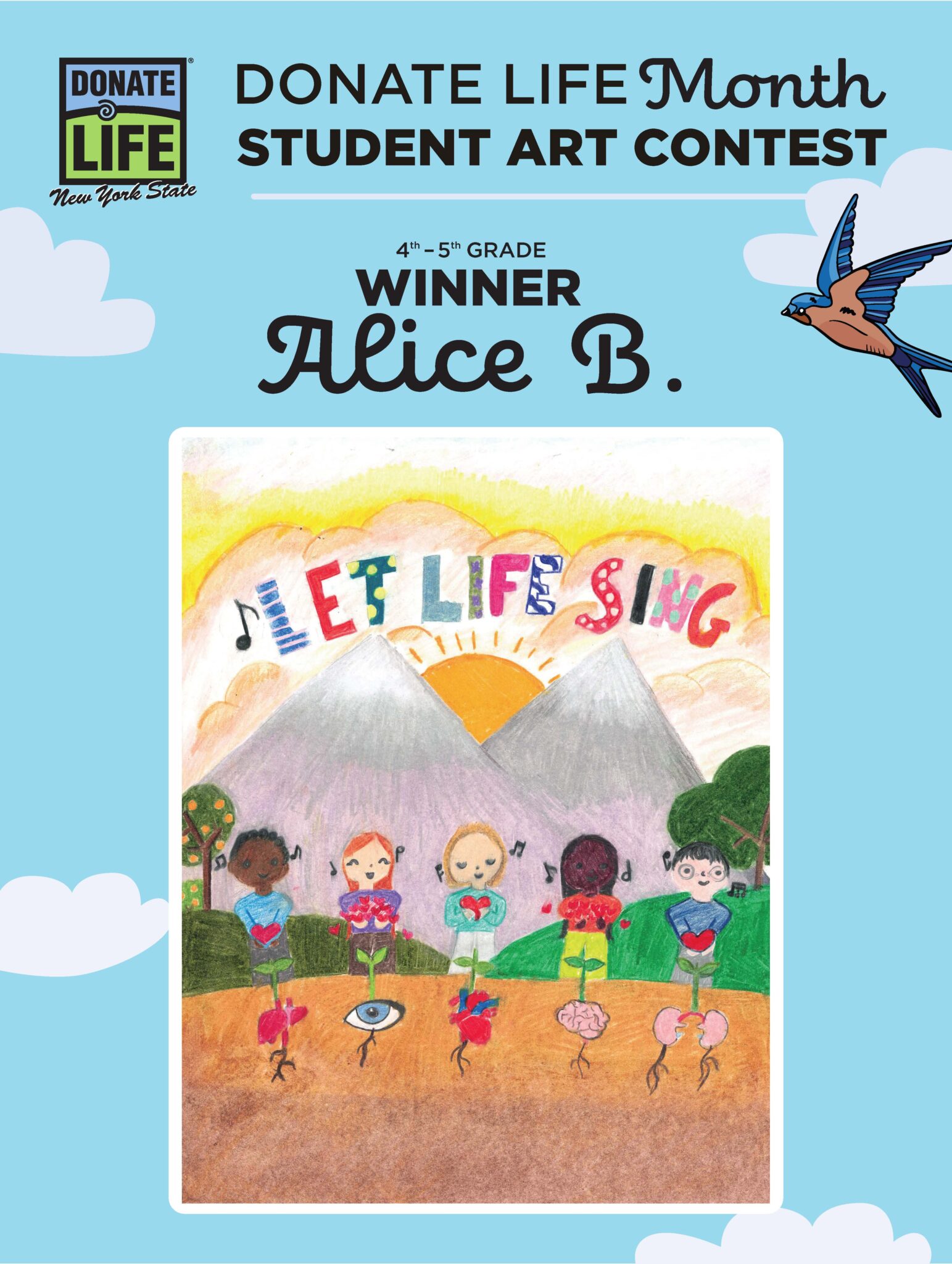 In celebration of Donate Life Month, Donate Life New York State (NYS), invited elementary, middle, and high school students attending public and private schools to share their donation and transplantation perspectives through art.